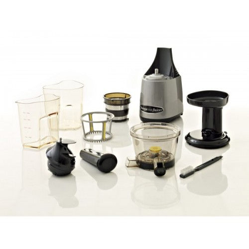 Omega VRT402HDS Juicer, low speed squeezing juicer system, slowly squeezes fresh juice from fruits, vegetables and leafy greens. This masticating low-speed system processes at 80rpm preventing oxidation. Nutrients are preserved and maintained for up to 72 hours without degradation. With the larger feed chute, you spend less time slicing and prepping your produce. The all new juicer tap and mixing function lets you juice all ingredients and fill the juice bowl with your favorite juice mixture. Once all food is juiced, you simply open the tap and release the mixed juice into your glass. With the automatic pulp ejection, you can juice continuously.